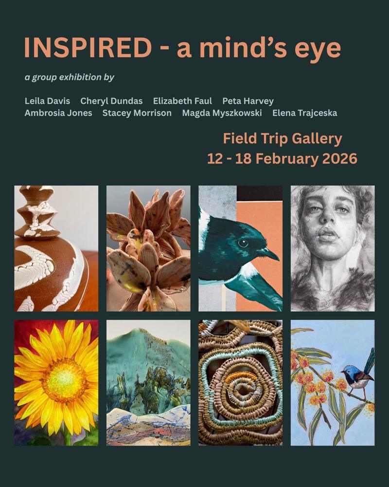 The exhibition is at Field Trip Gallery, 1 Latrobe Terrace, Paddington, Brisbane, Queensland