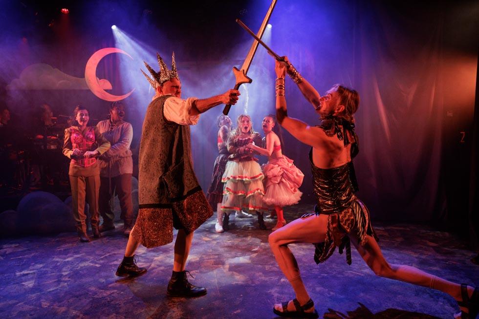 What stands out most is the production’s confidence. It is unapologetically queer and also slightly off beat and wonderfully kooky. It is revelling in this that delivers the heart and joy of Head Over Heels. The cast work together beautifully – each person bringing a different yet chaotic point of view. Jenni Little (fresh from runs in Titanique and Putting It Together) and Adam Noviello (seen most recently as Yitzhak in last year’s superb production of Hedwig and the Angry Inch) are outstanding as Philoclea and Musidorus, respectively. They bring heart, warmth and depth to the story and play off each other earnestly and beautifully.