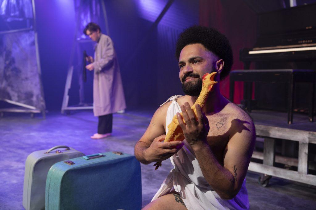 Running for 70 minutes without an interval, The Frogs delivers as much silly fun as you can have on a night out at the New Theatre. Director Alex Kendall Robson adapts the classic Greek comedy by Aristophanes, infusing it with slapstick and gag after gag. This side-splitting romp to the underworld pokes fun at world leaders (including a hilarious Donald Trump reference), creatives, and, with many direct-to-audience lines, those of us who consume theatre and the arts.