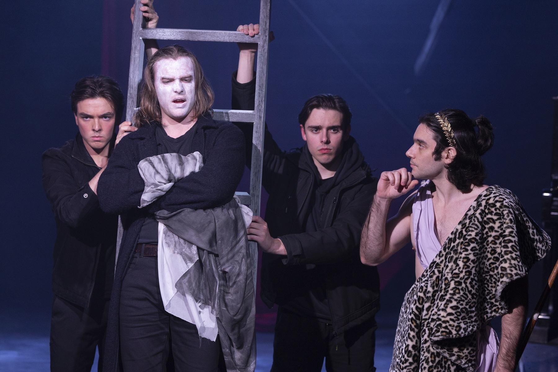 Running for 70 minutes without an interval, The Frogs delivers as much silly fun as you can have on a night out at the New Theatre. Director Alex Kendall Robson adapts the classic Greek comedy by Aristophanes, infusing it with slapstick and gag after gag. This side-splitting romp to the underworld pokes fun at world leaders (including a hilarious Donald Trump reference), creatives, and, with many direct-to-audience lines, those of us who consume theatre and the arts.